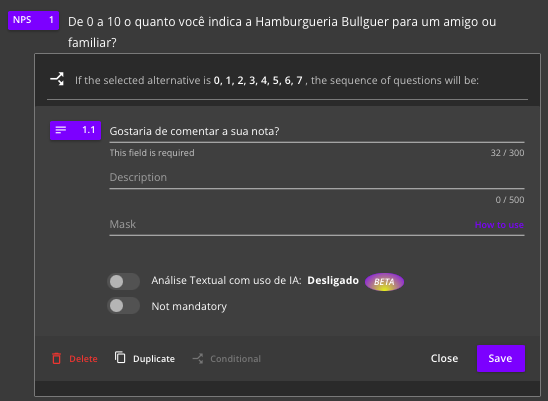 To take advantage of Textual Analysis, you need to activate it in specific questions within your surveys, such as NPS questions. Follow the steps below: